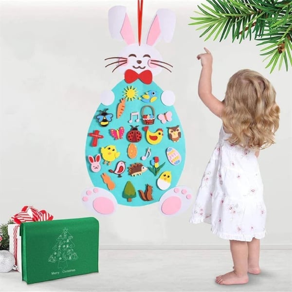 Our felt rabbit and ornament cutouts are made of felt, a soft and highly textural material that adds a sensory element to children's play.Felt toys are a wonderful addition to a play space for young children as they are safe and eco-friendly alternative to plastic toys. Plastic toys may contain heavy metals like lead or cadmium and other hazardous substances like dioxins.