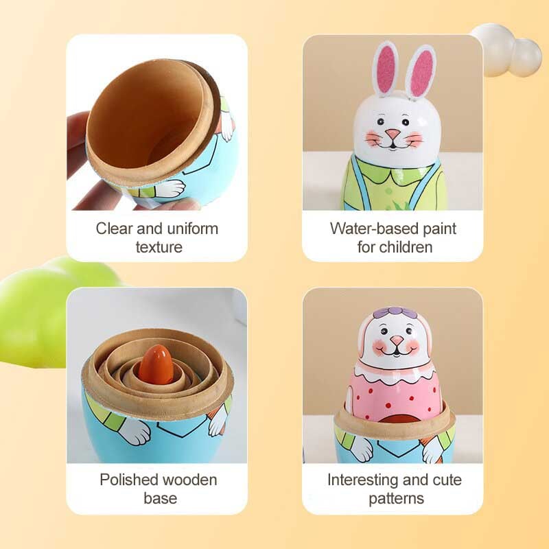 - Five-layer design: Contains five shapes of different sizes, each of which can be put into a larger rabbit. It is simple and fun to exercise children's hands-on and cognitive abilities.